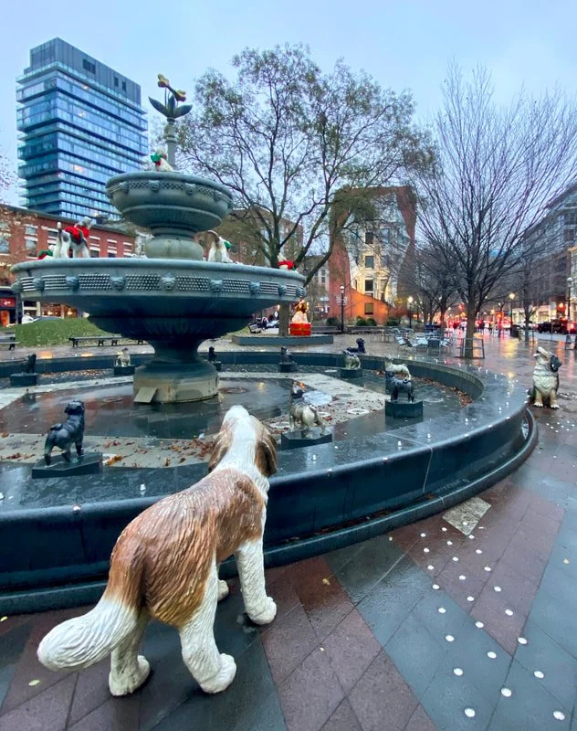 Berczy (“Dog and Cat”) Park, St. Lawrence Market, Toronto, Ontario.