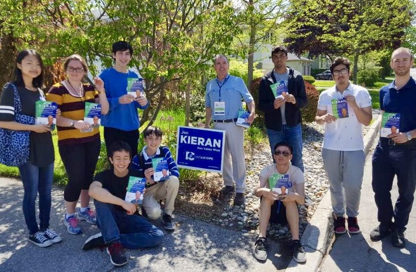 Canvassing with some of the 400+ volunteers in Don Valley West. The campaign was waged against Ontario's sitting Premier, and a 15-year incumbent Member of Provincial Parliament. An uphill battle!