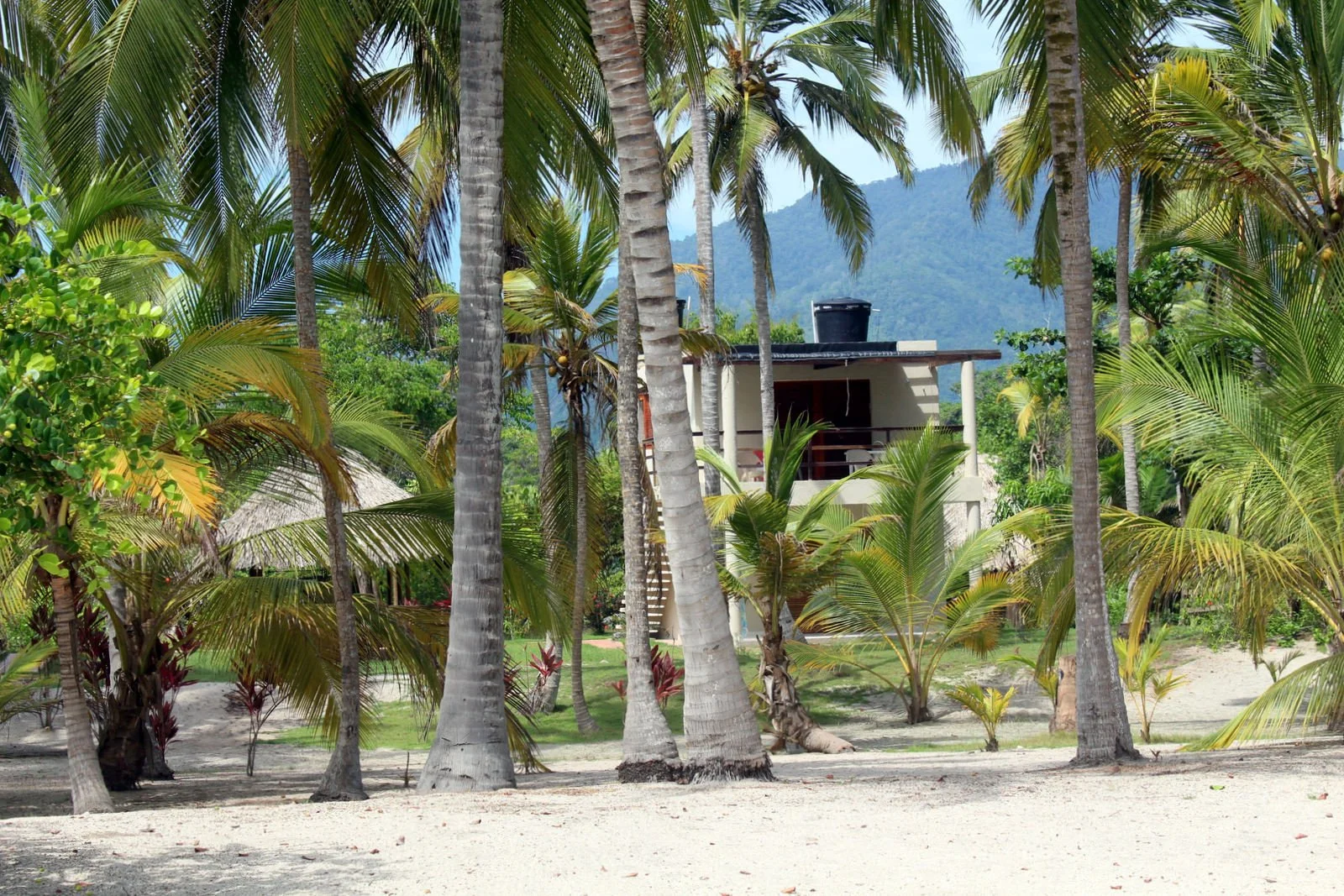 Rooftop PV and solar hot water installations at a remote, off-grid cabaña at Playa Costeño, on the northeast coast of Colombia, near the Venezuelan border.
