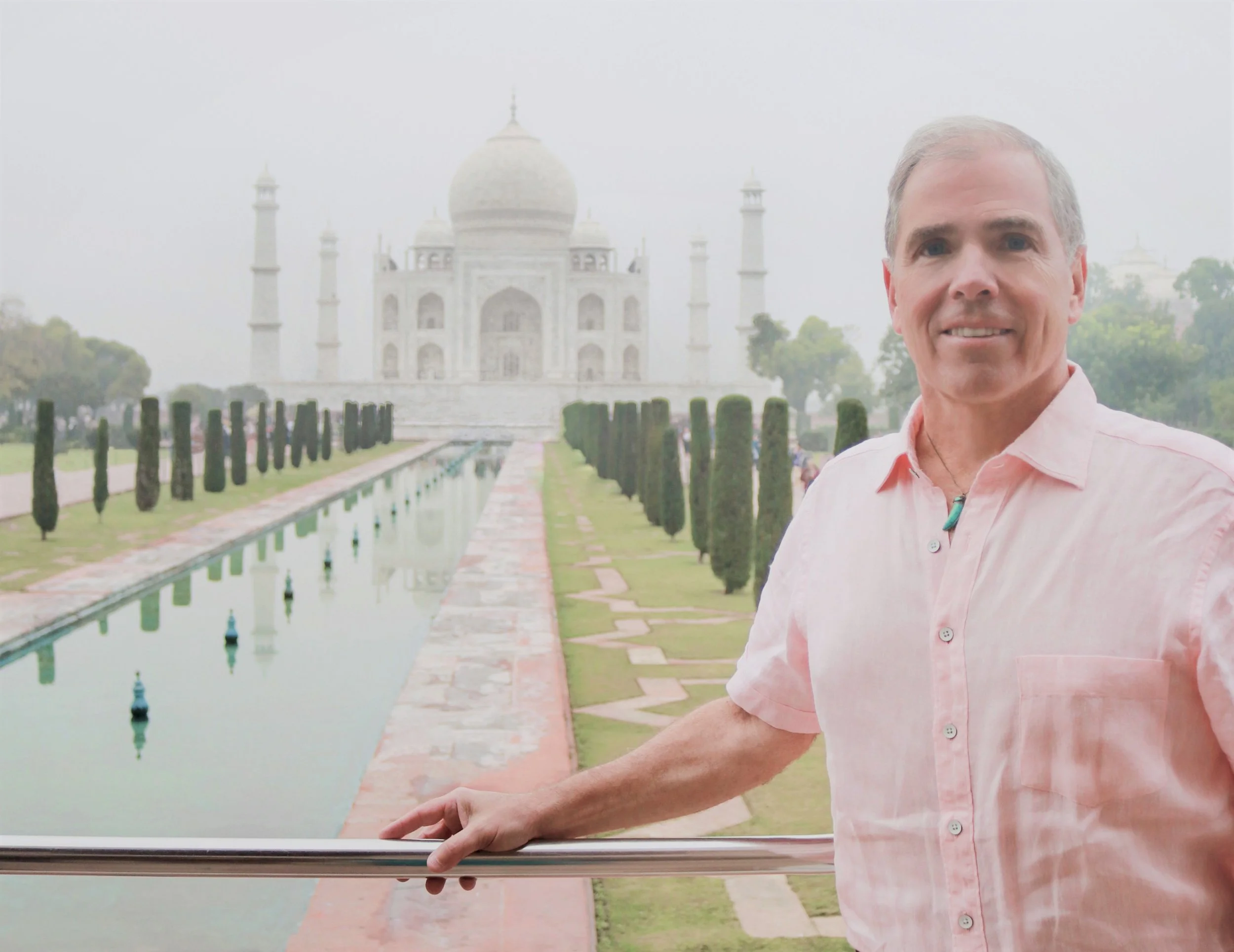 Standing in front of Mount Everest, near Base Camp One at 17,000 feet above sea level, Tibet.