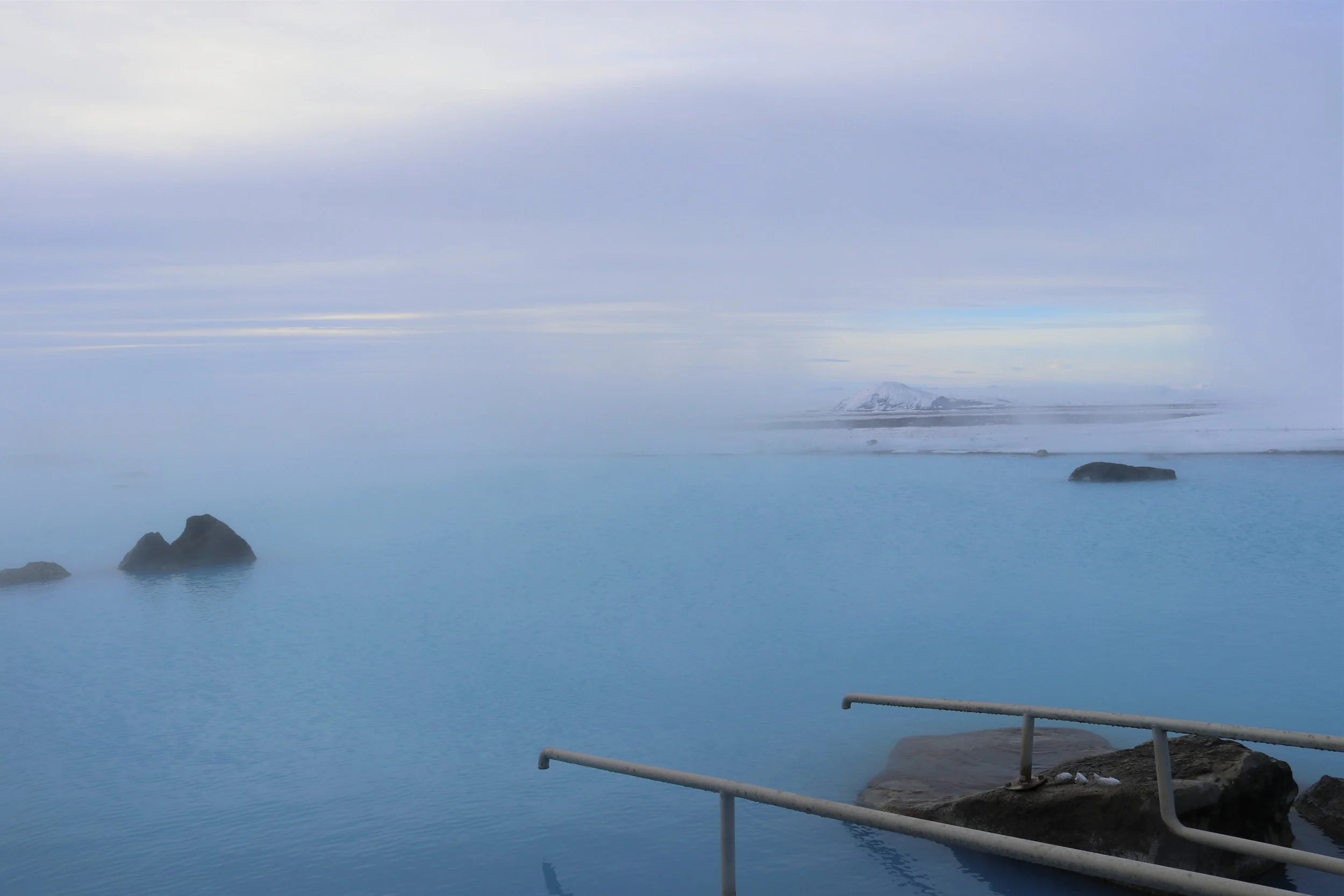 The geothermal lagoon at Mÿvatn, Iceland, where the water temperature hovers constantly between 38 and 40 degrees Celsius.