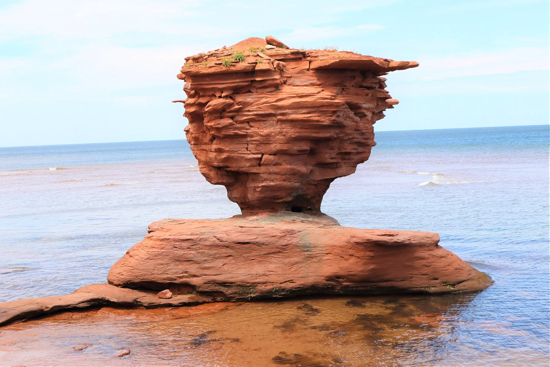 Teacup Rock, six weeks before it was washed away by Hurricane Fiona, Thunder Cove Beach, Prince Edward Island.