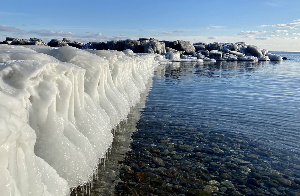 An ice wall forms on the shores of Lake Ontario, Kew Beach, Toronto.