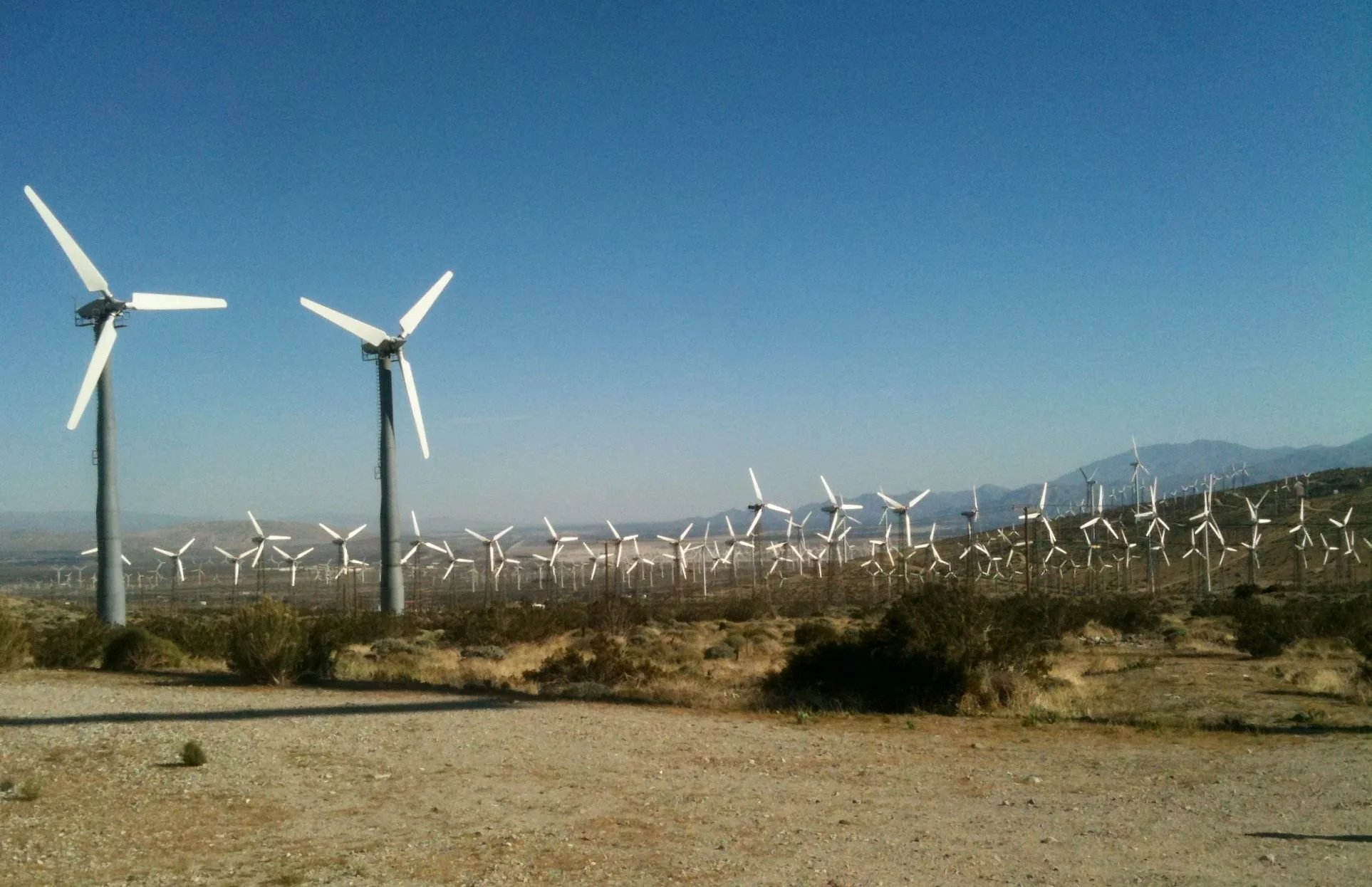 Wind farms in the San Gorgonio Mountain Pass of North Palm Springs, California.