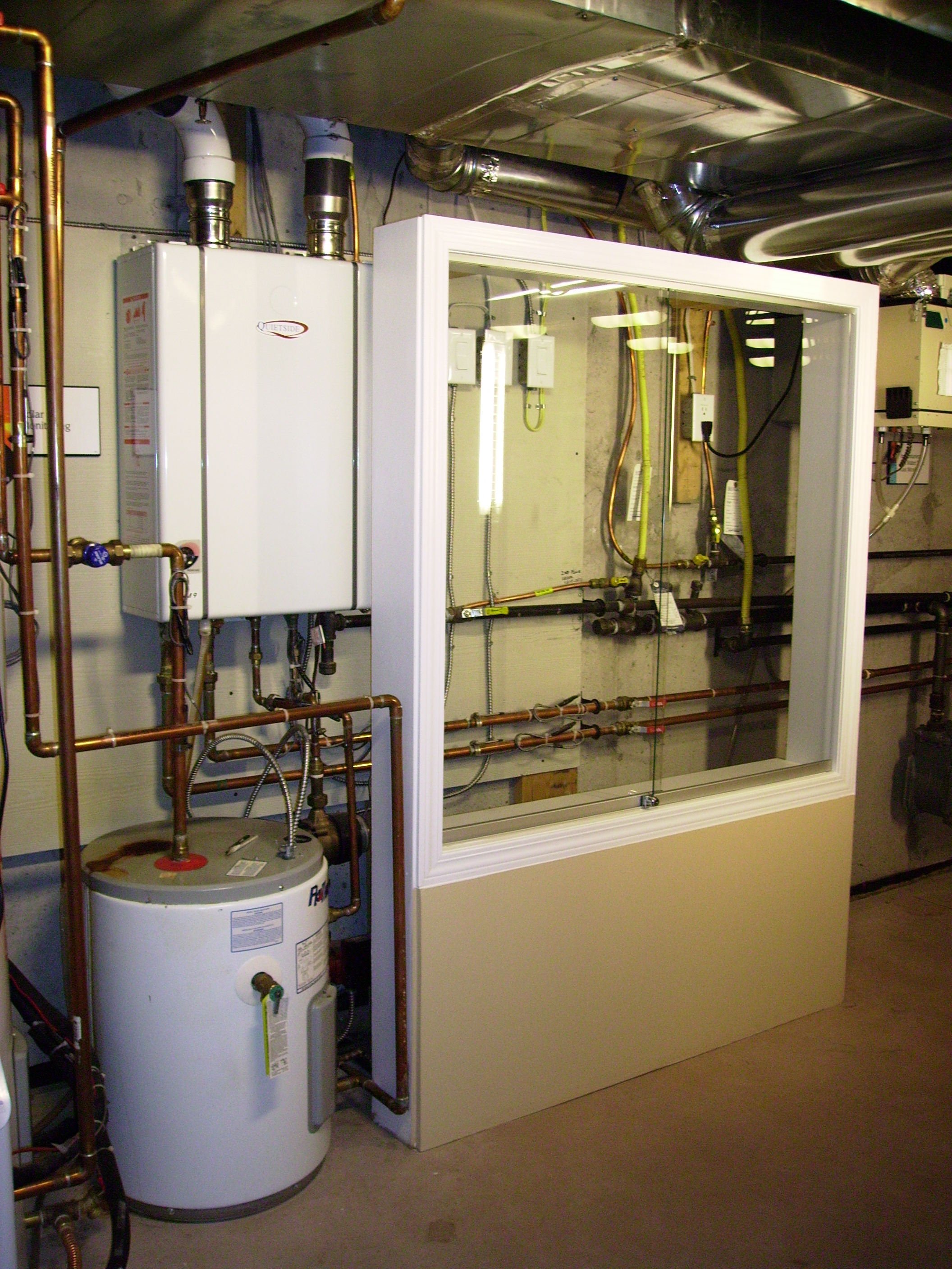 Domestic solar hot water system with basement heat exchanger, Milton, Ontario.